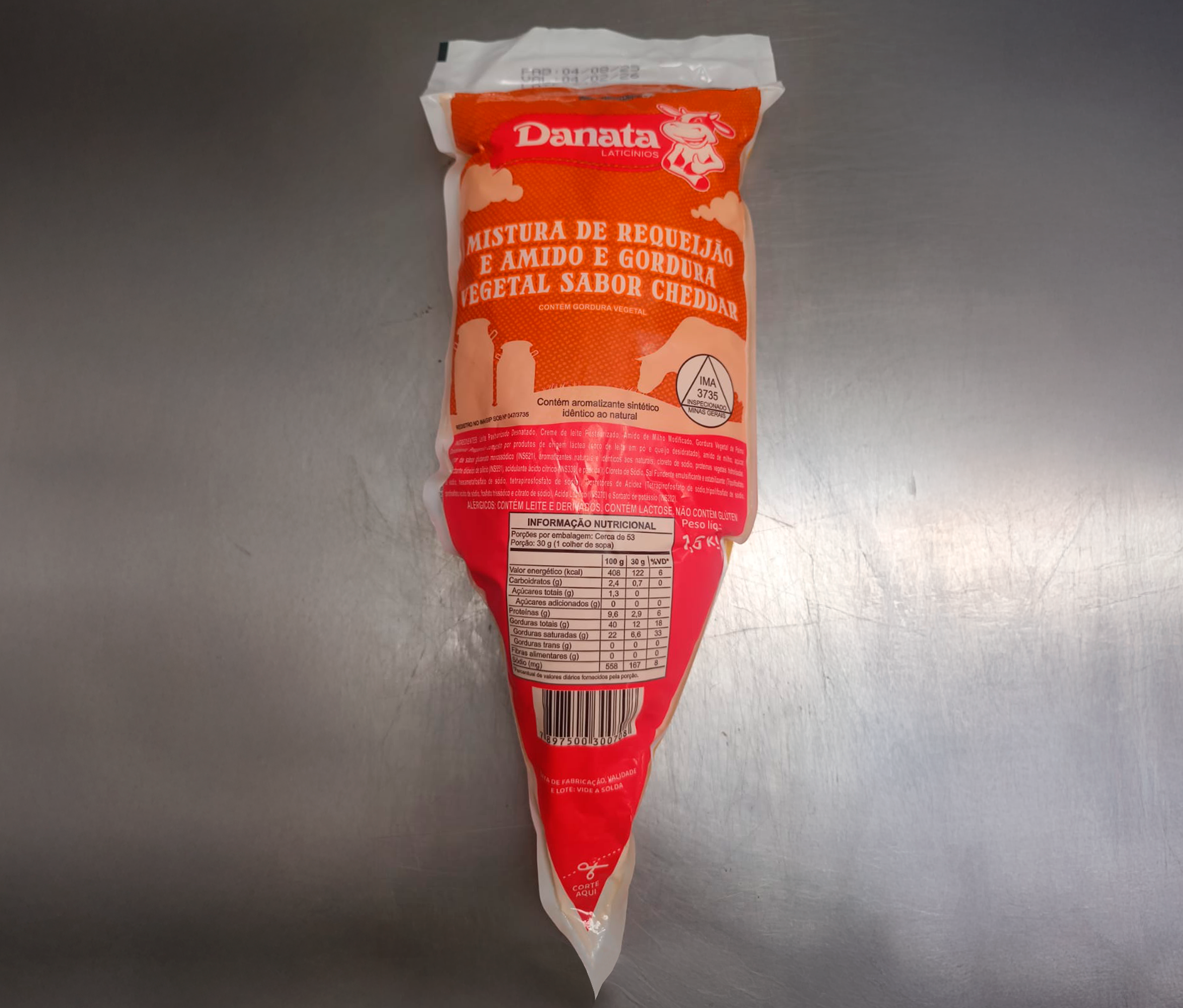 Ingredientes: Leite Pasteurizado Desnatado, Creme de Leite, Amido de Milho Modificado, Margarina, Gordura Vegetal de Palma, Cloreto de Sódio (sal), Condimento, Preparado Sabor Requeijão (Aromatizantes a Base de Derivados Lácteos, Sal, Farinha de Milho, Realçador de Sabor Glutamato Monossódico, Maltodextrina, Substâncias Aromatizantes Idênticas ao Natural, Antiumectantes Dióxido de Silício e Fosfato Tricálcio e Acidulante Ácido Cítrico), Emulsificantes e Estabilizantes (Tetrapirosfosfato de Sódio, Tripolifosfato de Sódio, Pirofosfato Ácido de Sódio, Fosfato Trissódico e Citrato de Sódio), Regulador de Acidez Ácido Láctico e Conservador Sorbato de Potássio.